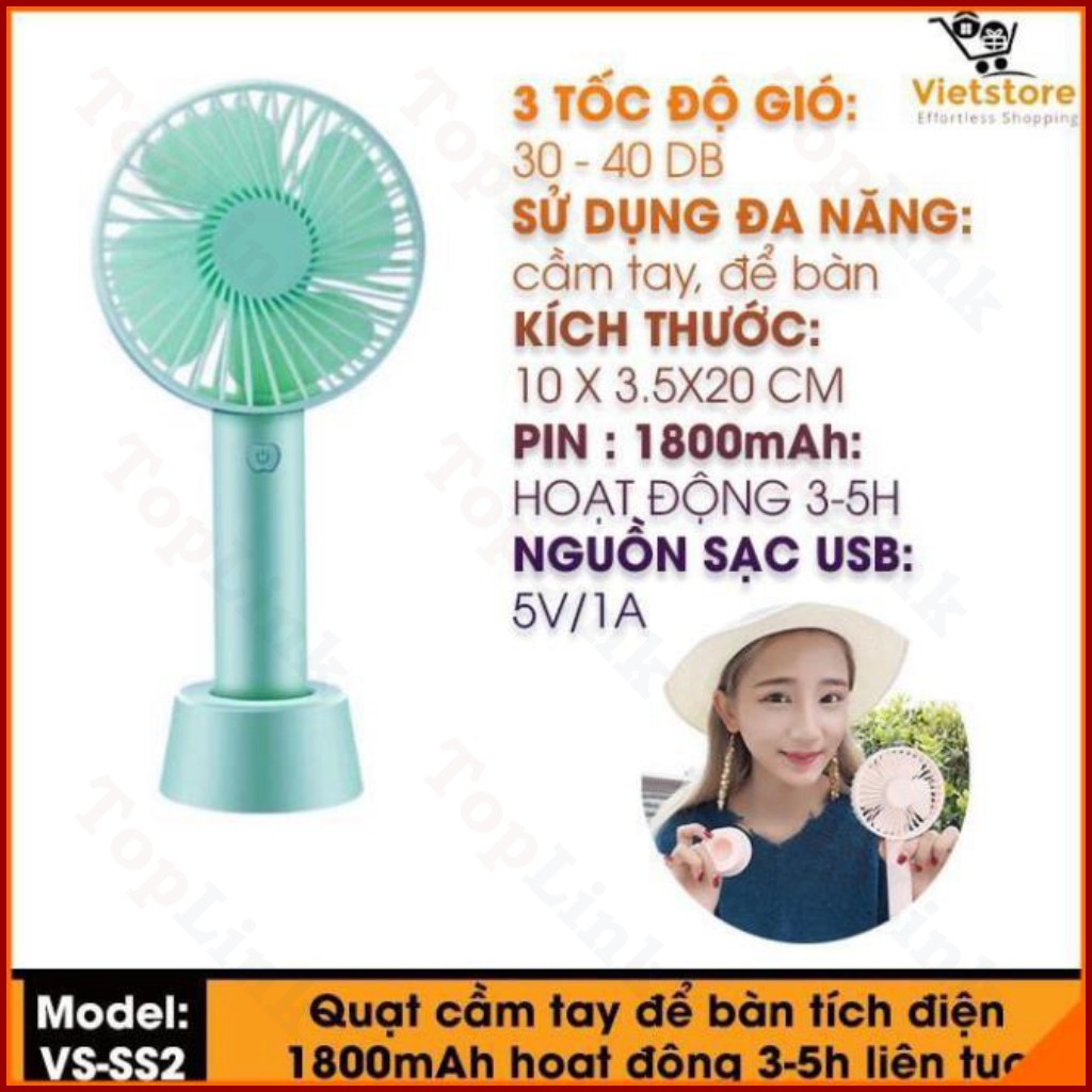 Quạt cầm tay Quạt mini tích điện có chân để bàn tiện ích 3 mức độ gió siêu mát - TopLink