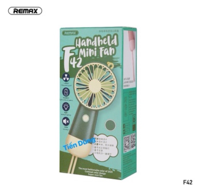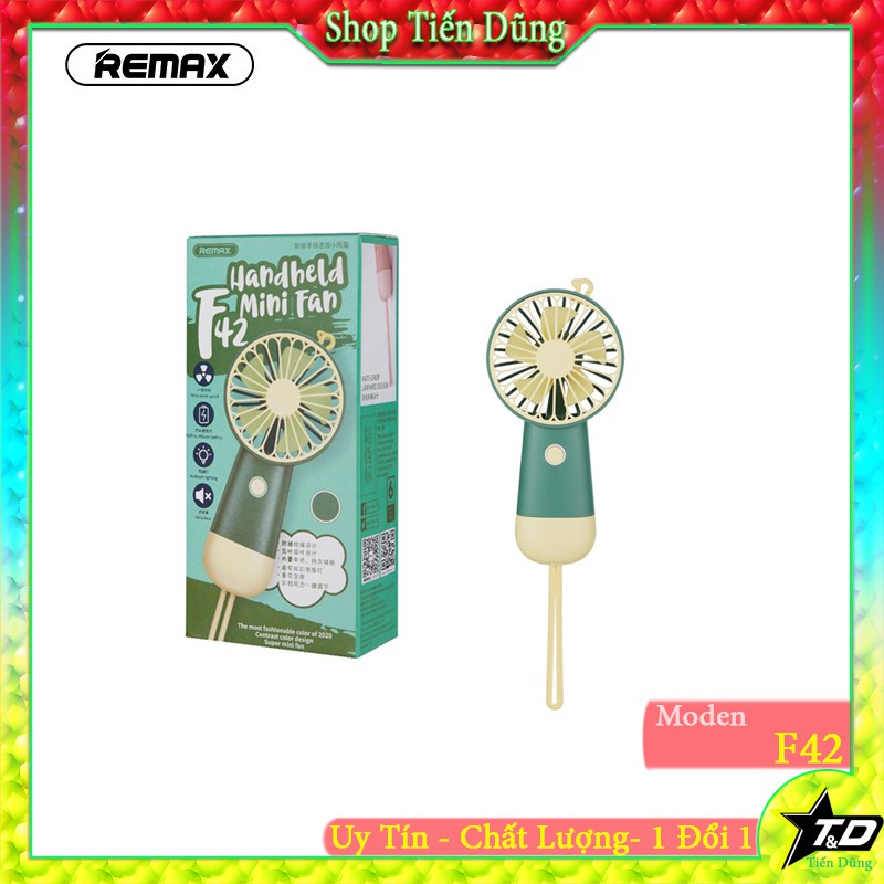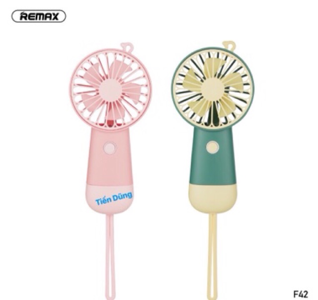 Quạt cầm tay remax F42 có dây đeo pin dung lượng 500mAh - Quạt remax F42 có đèn loại 5 cánh.Thông số quạt remax F42