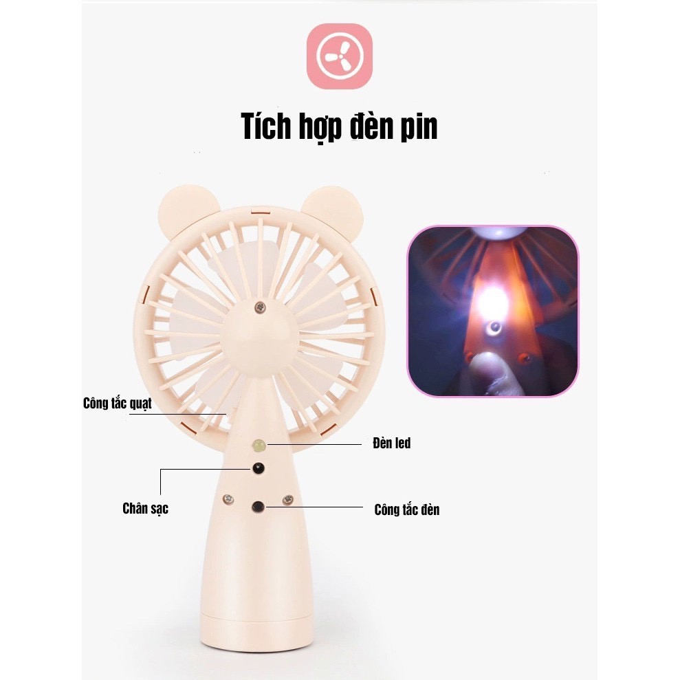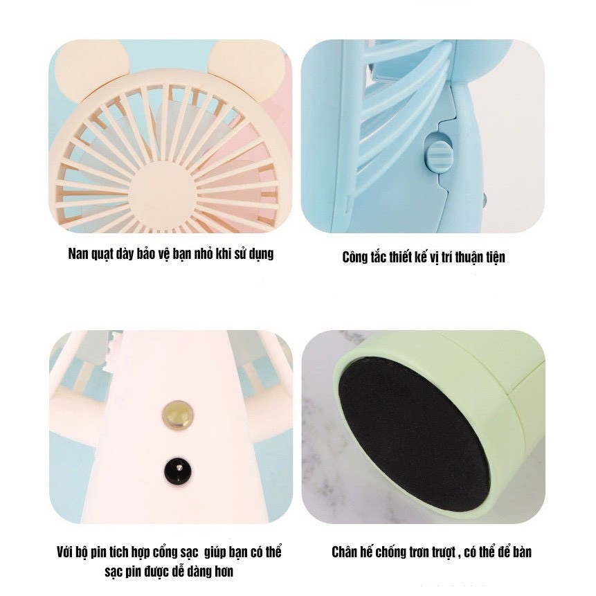 Quạt Cầm Tay Sạc USB Tích Điện Gió Cực Mạnh Không Ồn Êm Ru Tĩnh Lặng Quạt Mini HB50