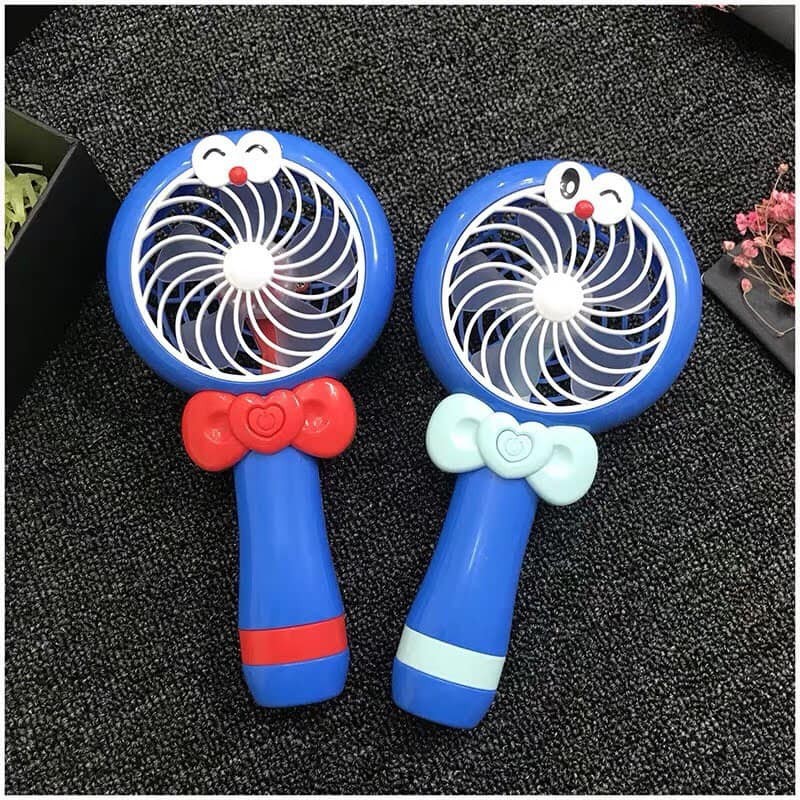 Quạt cầm tay tích điện kiểu dáng Doreamon [có đèn led, có dây cắm sạc]