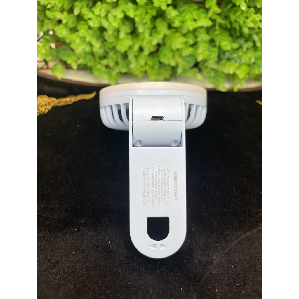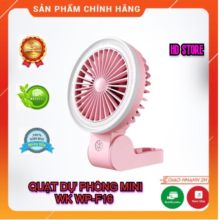 👉 WK WP-F16 Quạt cầm tay mini wk f16 - Quạt F16 có thể để bạn với tay cầm gập góc 270 độ và có đèn led xung quang cánh.