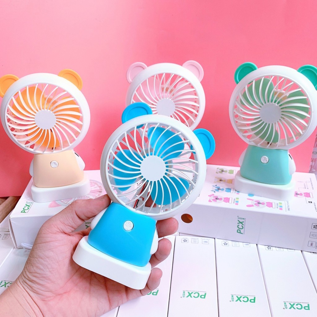 QUẠT CẦM TAY MINI nhiều màu hình gấu trúc, quạt sạc tích điện , chế độ mát cực mạnh, có đèn bắt mắt