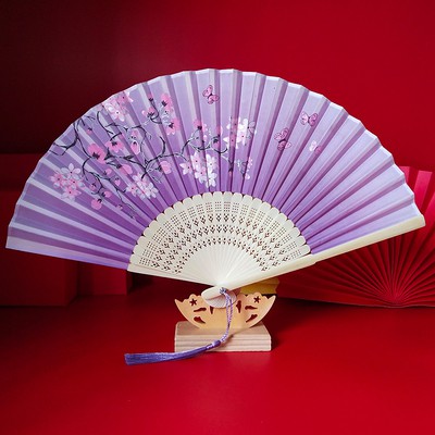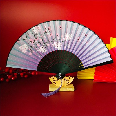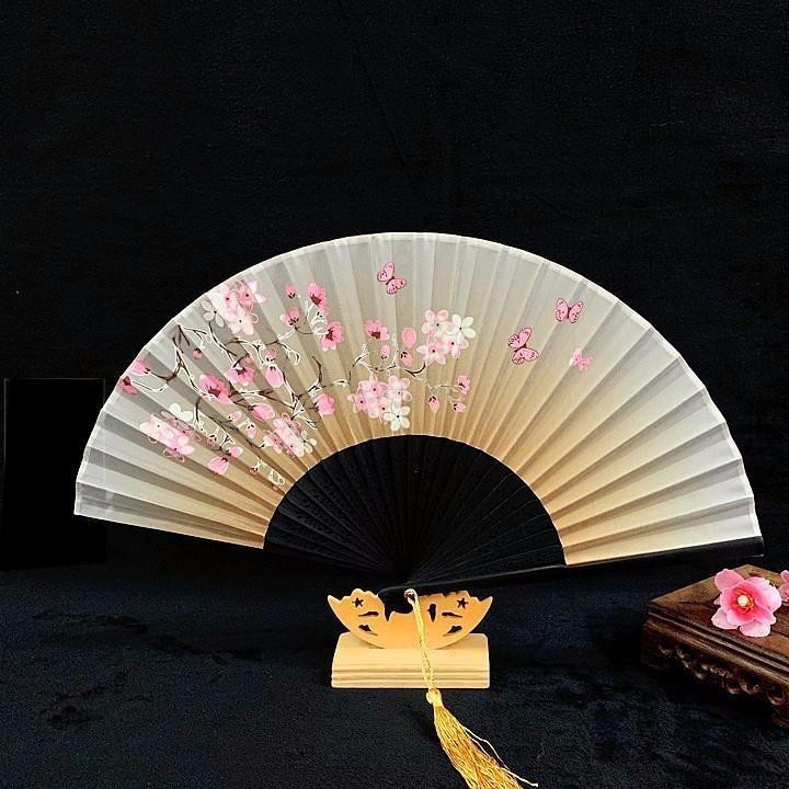 Nhà cửa & Đời sống > Trang trí nhà cửa > Khác || Quạt cổ trang dây tuyến VÀNG ĐÀO NỞ vải lụa xếp cầm tay quà tặng Trung Quốc xinh xắnCòn hàng