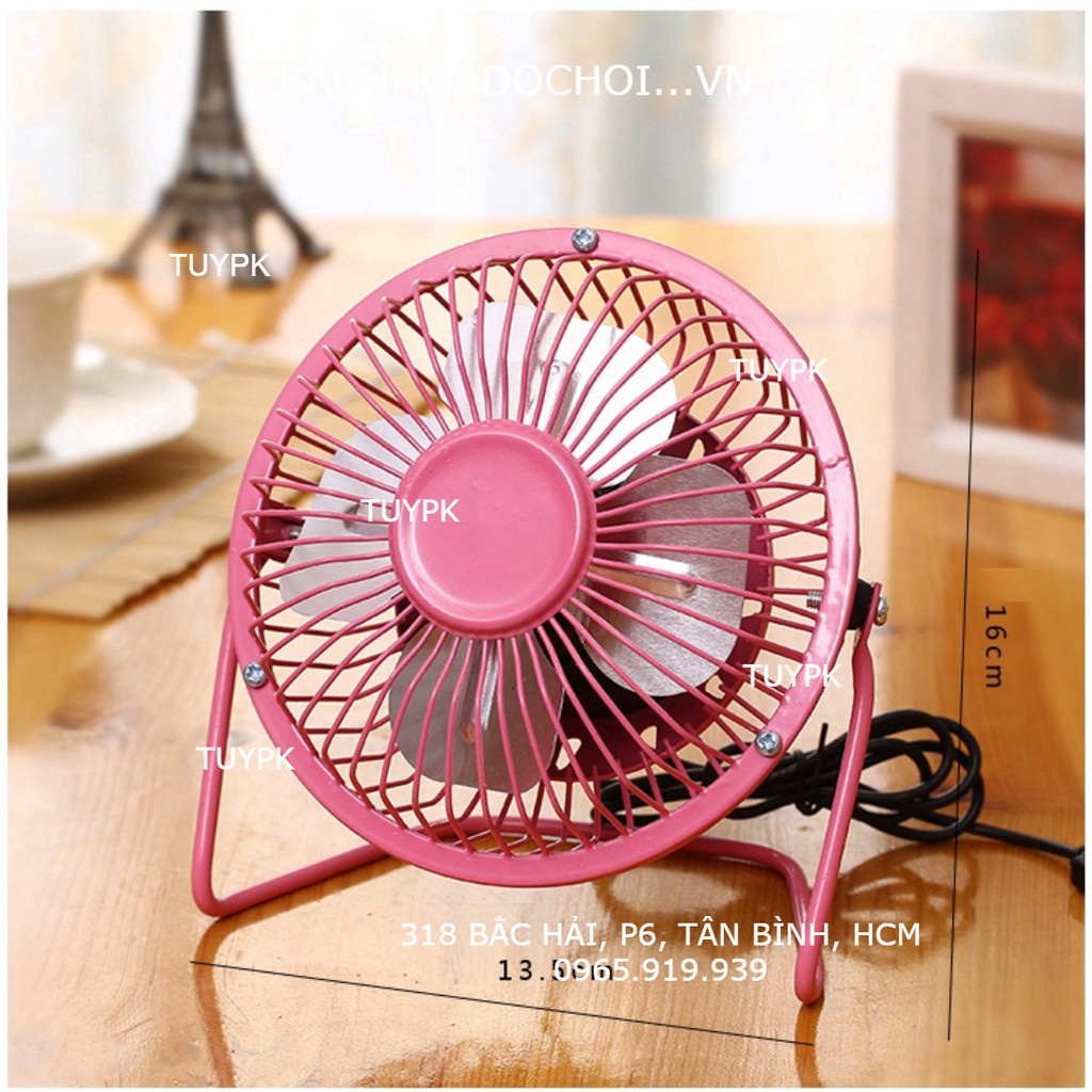 Quạt để bàn mini cổng USB lồng sắt để bàn làm việc và giường trẻ emQuạt lồng sắt chắc chắn đủ màu sắc trẻ trung (Đen/Hồng/Xanh), Động cơ mạnh mẽ nhưng chạy êm, Dây cắm USB và Kích thước nhỏ gọn nên phù hợp để bàn làm việc hay mang theo đi du lịch, dã ngoại..