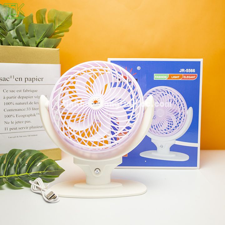 - Quạt JR-5566 vừa có chức năng quạt mát với 2 tốc độ gió, vừa có chức năng đèn thắp sáng với 2 chế độ sáng, trọng lượng nhẹ chỉ khoảng 800g