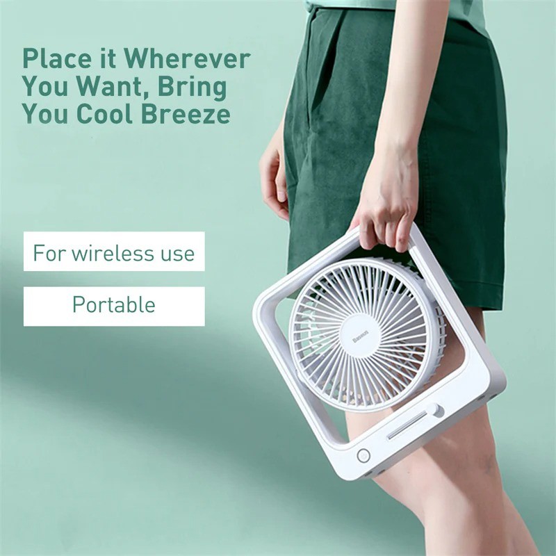 Giới thiệu [Mã ELHA22 giảm 6% đơn 300K] Quạt để bàn tích điện 5000mAh hỗ trợ nhiều chế độ gió chính hãng Baseus