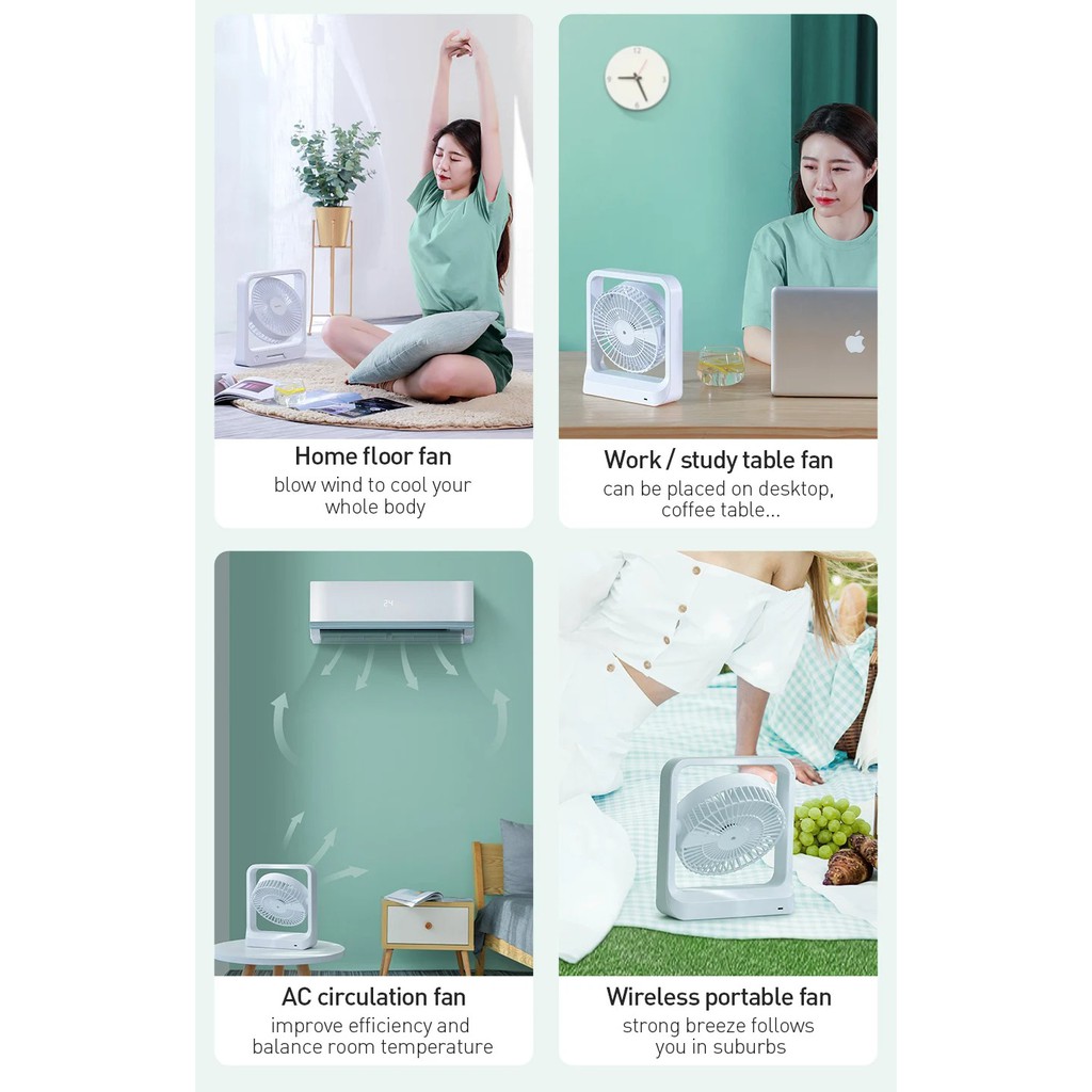 Điện Thoại & Phụ Kiện > Phụ kiện > Quạt USB & Quạt điện thoại || Quạt để bàn tích điện 5000mAh hỗ trợ nhiều chế độ gió chính hãng BaseusCòn hàng