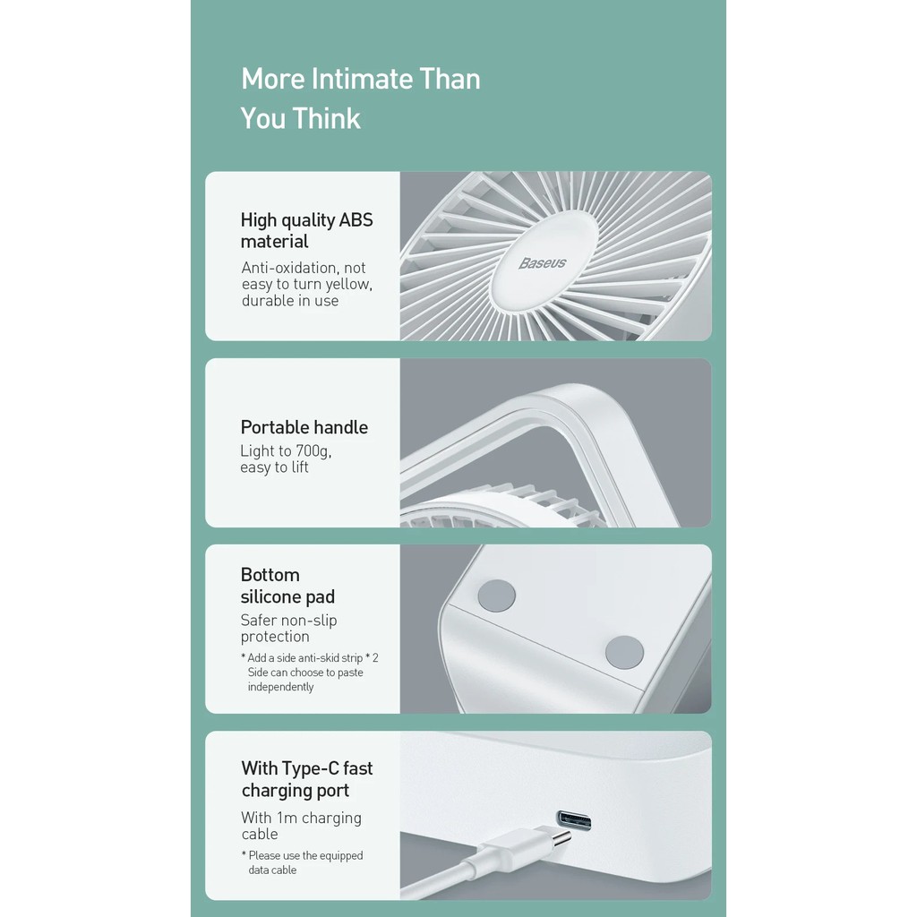 Quạt tích điện để bàn baseus tích hợp gạt thay đổi gió mang lại nhiều mức gió phù hợp mọi hoàn cảnh. Dễ Tháo lắp vệ sinh. Pin dung lượng 5000mAh sử dụng lâu , dễ sử dụng ...