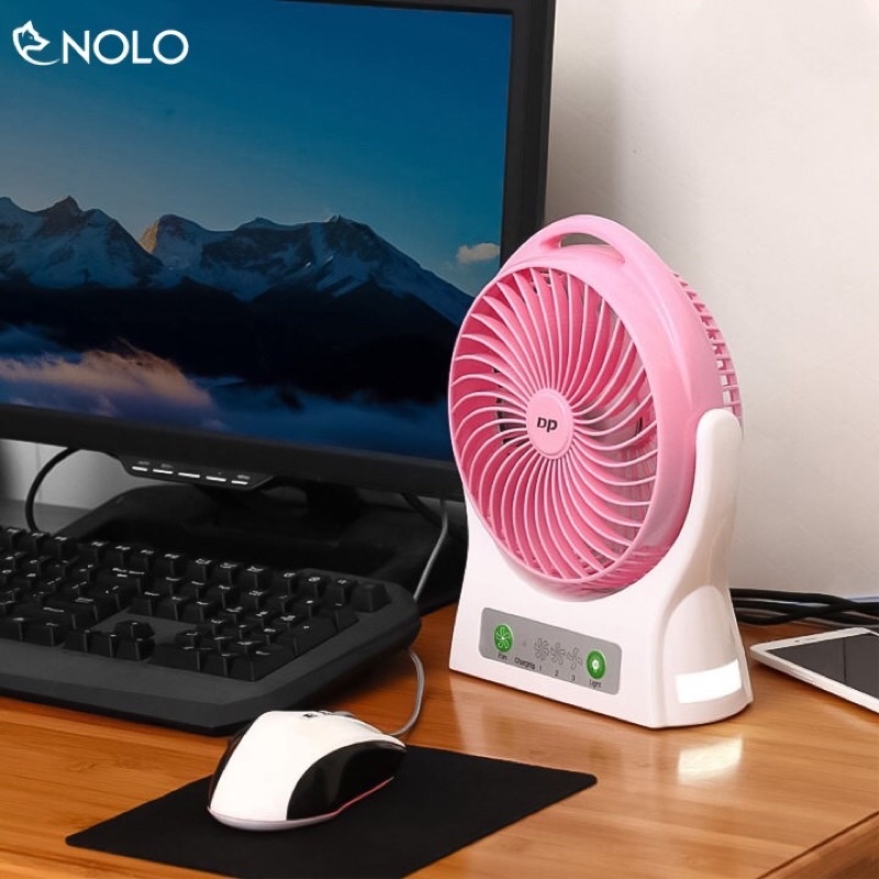 Điện Thoại & Phụ Kiện > Phụ kiện > Quạt USB & Quạt điện thoại || Quạt Để Bàn Tích Điện Pin Sạc Cỡ To DP Model DP7605 Có Đèn Led Và 3 Tốc Độ Gió Công Suất 4.2W Dung Lượng Pin 4000mahCòn hàng