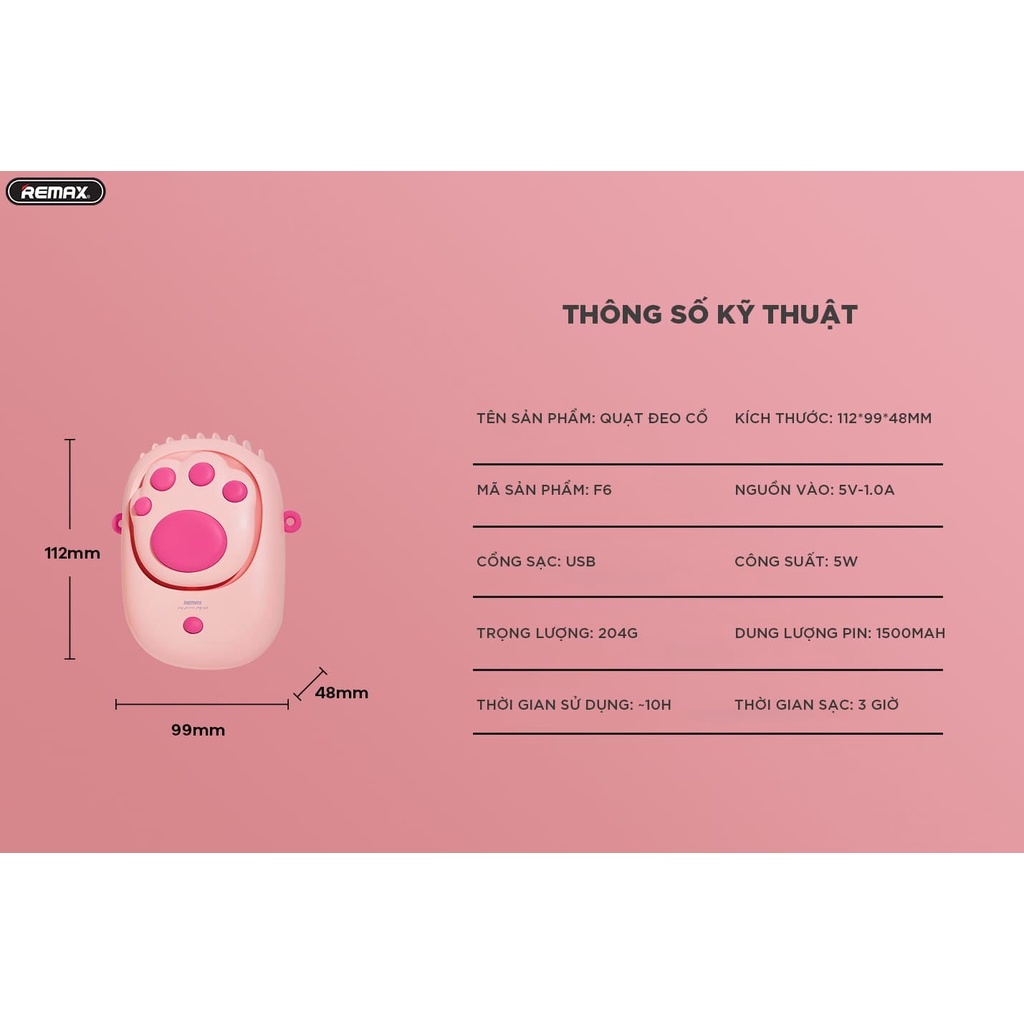 Quạt mini đeo cổ Remax F36 Quạt đeo cổ mini chính hãng REMAX treo cổ cầm tay tiện lợi cao cấp nhiều màu