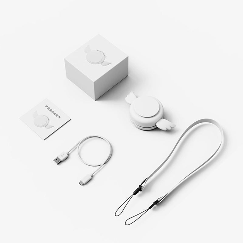 Little Angel Wearable Fan Rechargeable Portable Neck Fan USB Powered Neck Silent Fan 3 Speed 1200mAh Battery Air CoolerFeatures: The mini fan is made of Eco-friendly plastic , no harm to skin, waterproof and durable. You can put this handheld fan in your pocket or bag, also can wear the lash fan on a lanyard around your neck. The mini fan is easy to carry.