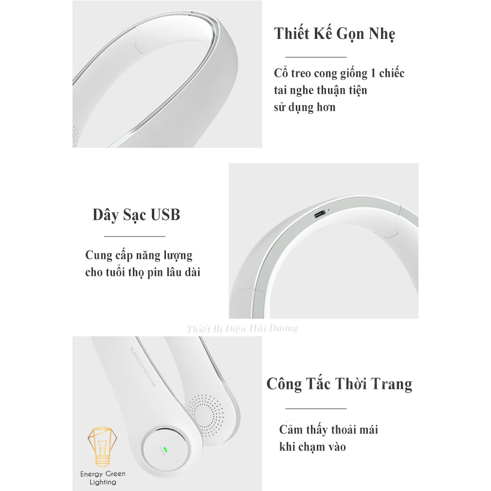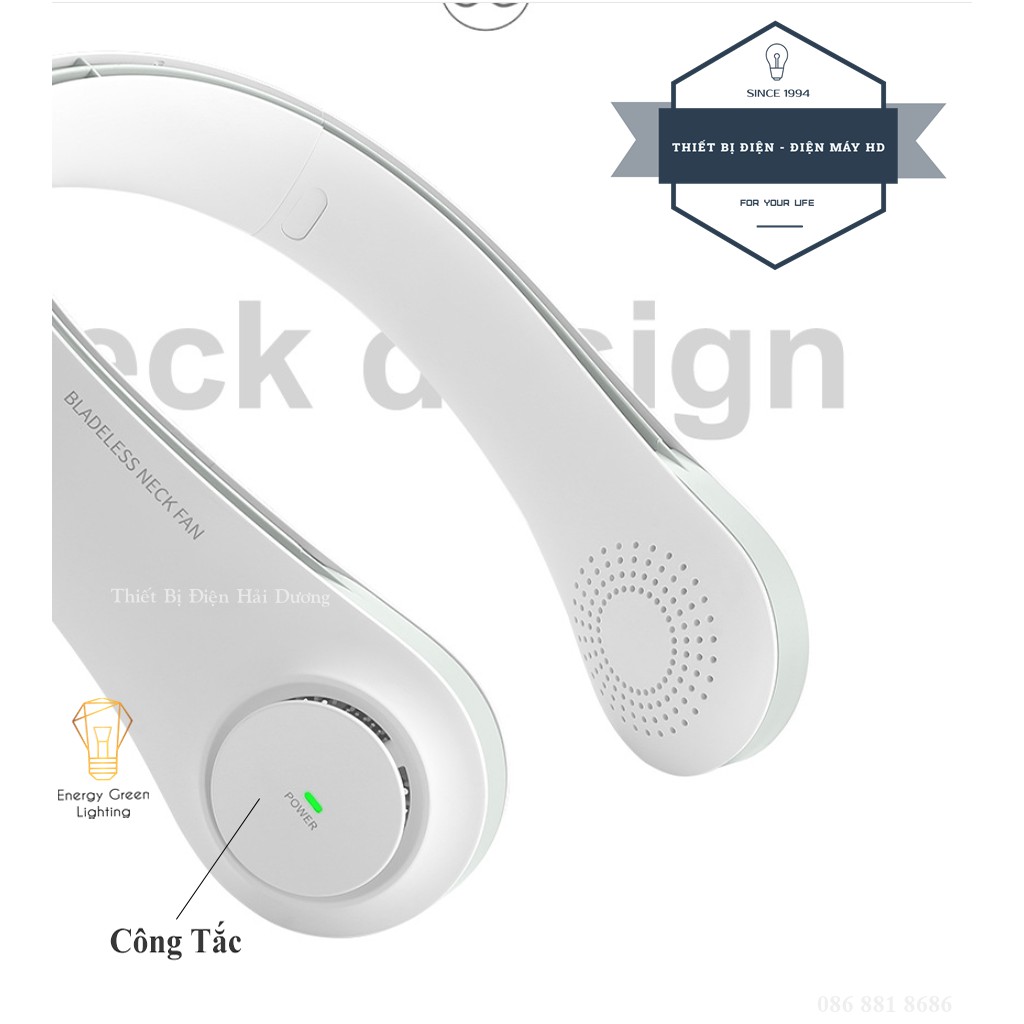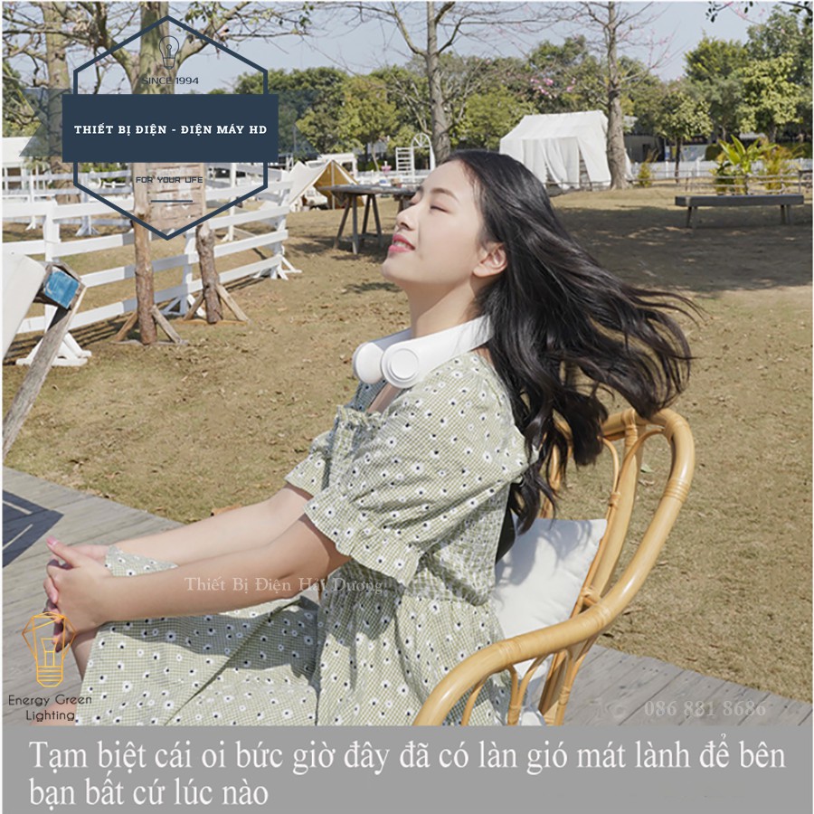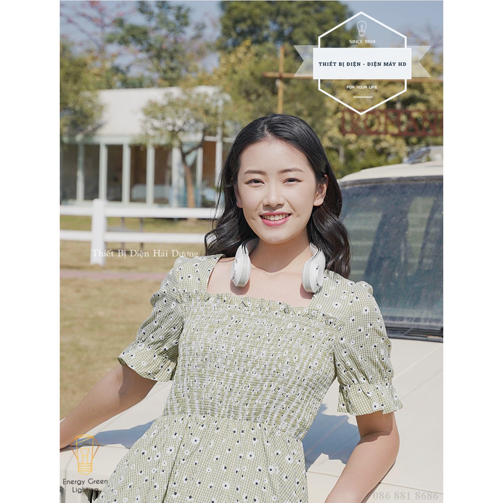 Quạt Đeo Cổ Thời Trang Cao Cấp - Giả Tai Nghe F12 - Dây Sạc USB - Energy Green Lighting - Bảo Hành 12 Tháng