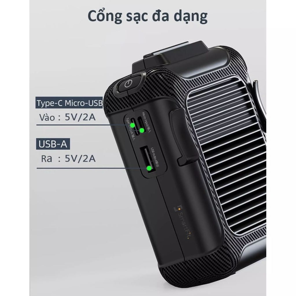 Điện Thoại & Phụ Kiện > Phụ kiện > Quạt USB & Quạt điện thoại || Quạt đeo thắt lưng đeo cổ mini kiêm sạc dự phòng siêu bền bỉ 12H - Chém văng cơn nóng pin 6000mAhCòn hàng