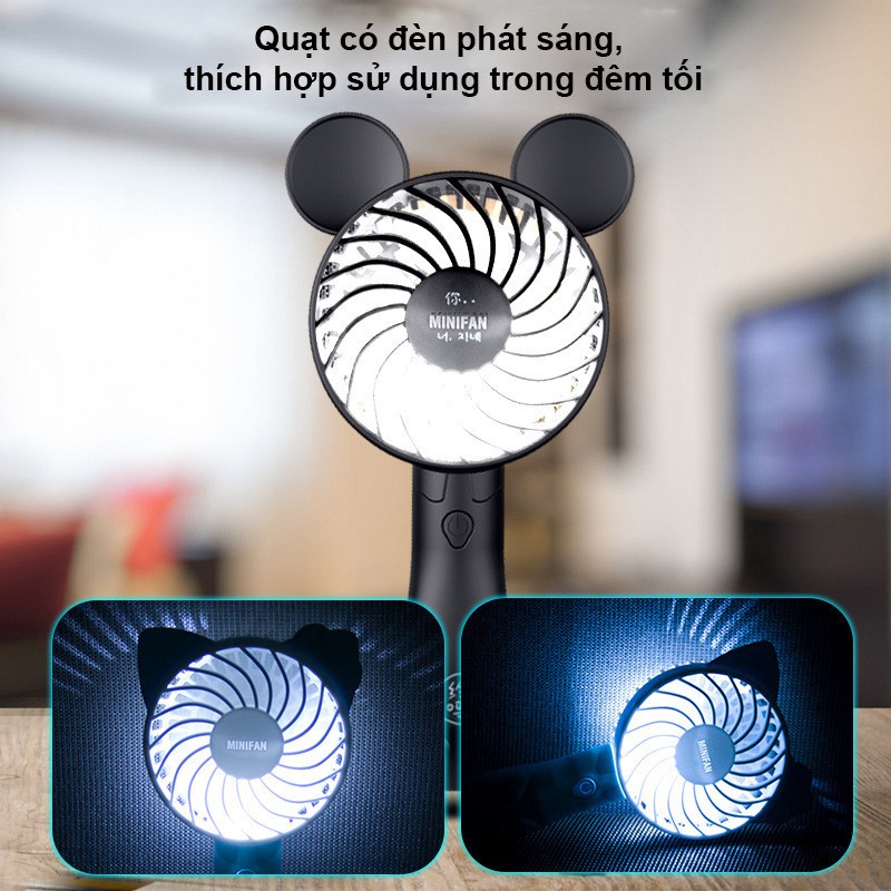 Quạt điện mini cầm tay có đèn Led hình tai thú cưng ( có sẵn hàng)