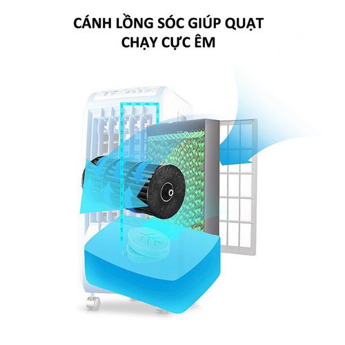 Sử dụng quạt thổi hơi đá, bạn vui lòng đổ nước lạnh, kèm đá lạnh, và 2 hộp nước giúp nhiệt sau khi đã làm lạnh trong tủ trước khi sử dụng