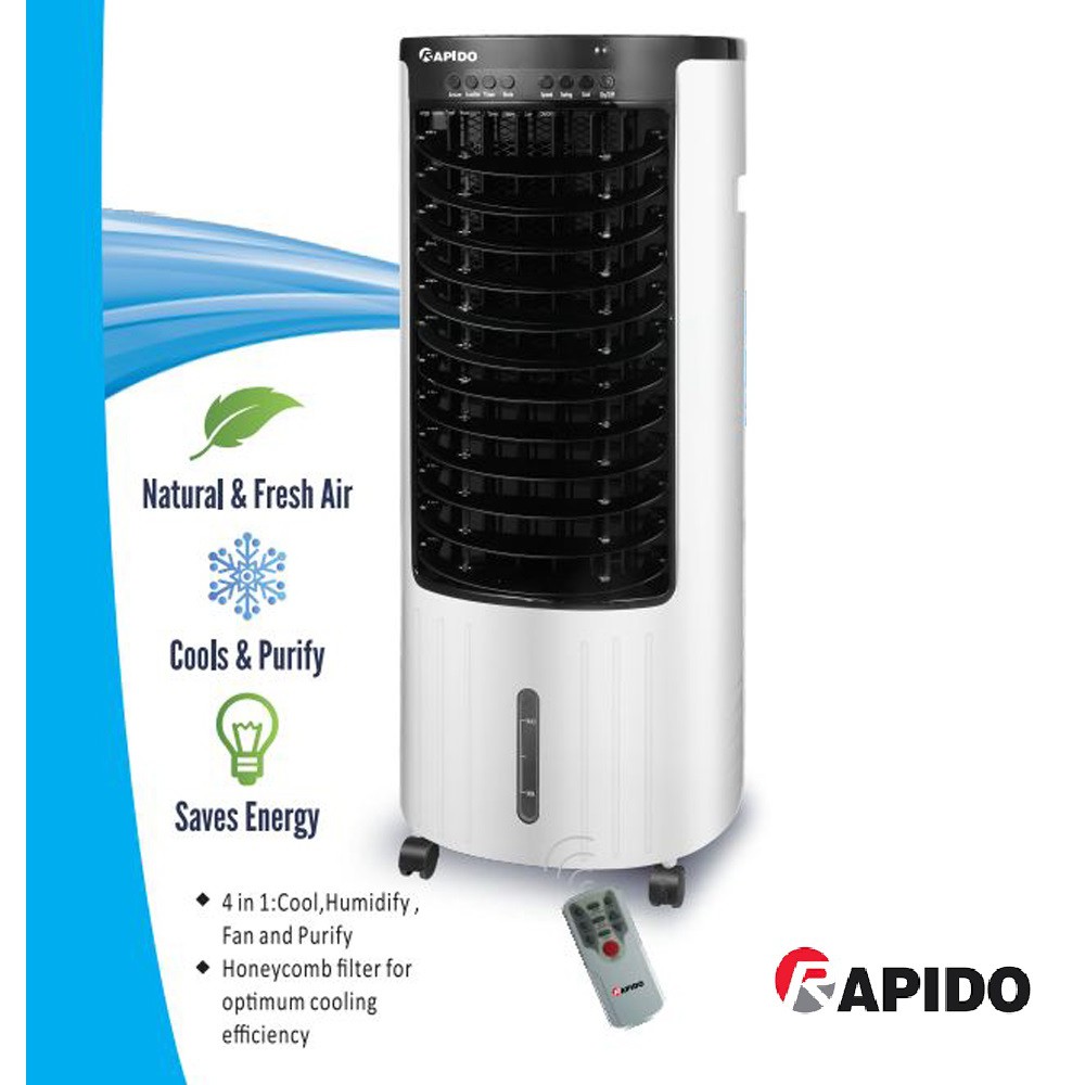 Quạt điều hòa không khí Rapido với thiết kế hiện đại, chức năng vượt trội mang lại sự tiện nghi cho gia đình bạn. Sự kết hợp hài hòa giữa 4 chức năng làm lạnh, giữ ẩm, quạt, làm sạch giúp tối ưu chức năng cần có cho 1 chiếc quạt điều hòa.