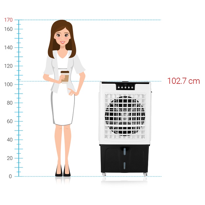 ✅Lưu lượng gió lớn lên đến 1800 m3/h với góc thổi gió rộng đến 76 độ cung cấp hơi nước làm mát tốt cho diện tích phòng 20 - 25 m2.