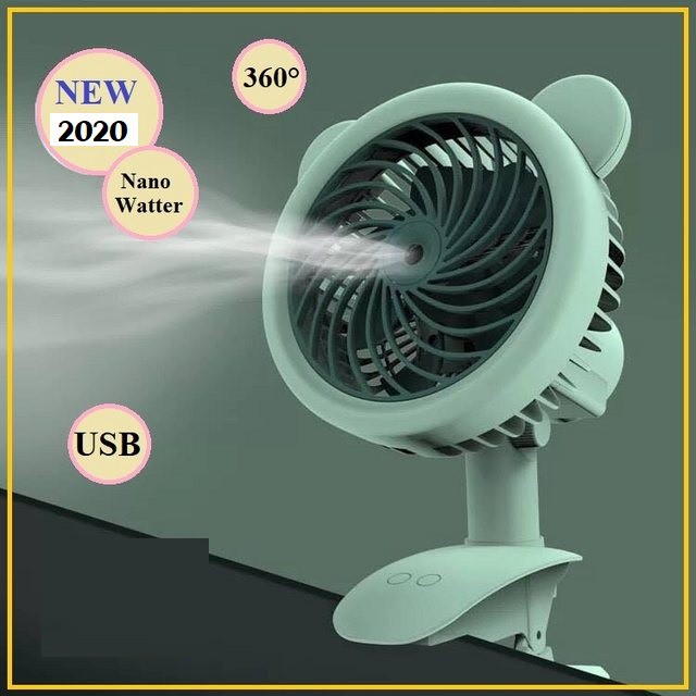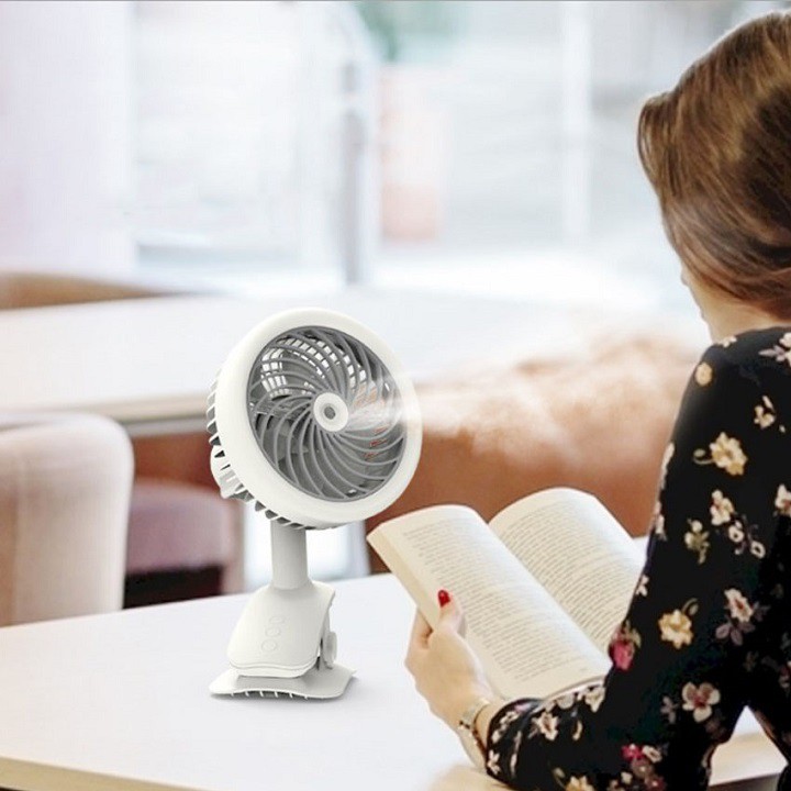 Quạt phun sương mini để bàn mini đa năng, có kẹp bàn, 3 cấp độ gió, màu sắc đa dạng, tích điện hỗ trợ sạc và sử dụng lâu dài