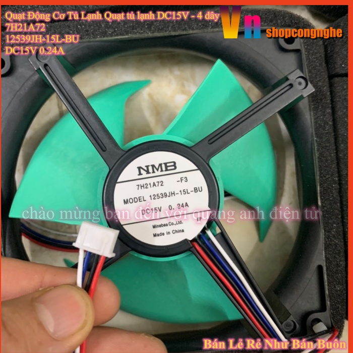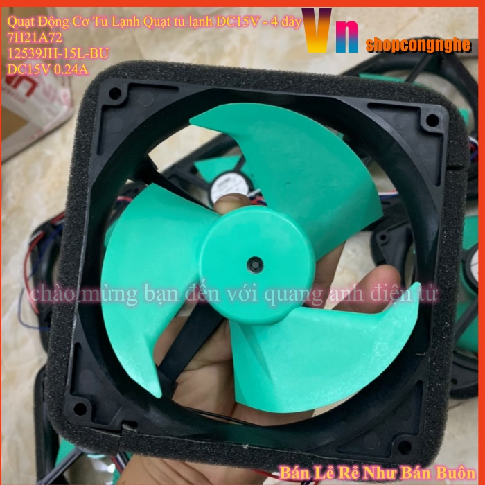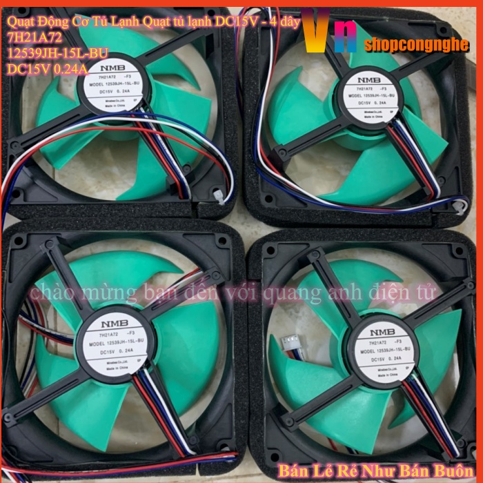 Quạt Động Cơ Tủ Lạnh Quạt tủ lạnh DC15V - 4 dây 7H21A72 12539JH-15L-BU DC15V 0.24ATên sản phẩm: Quạt tản nhiệt DC15V cho tủ lạnh