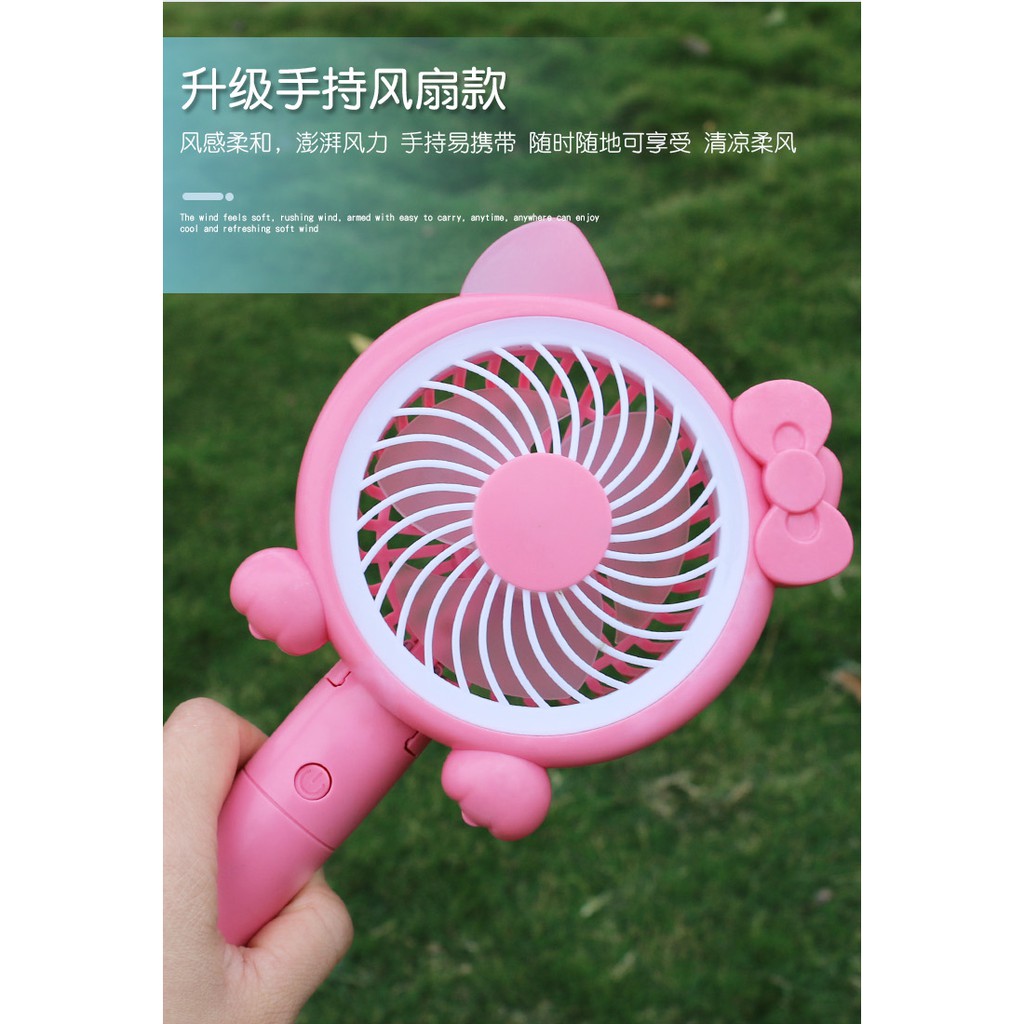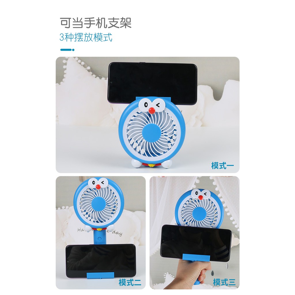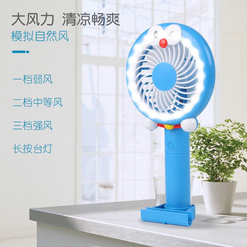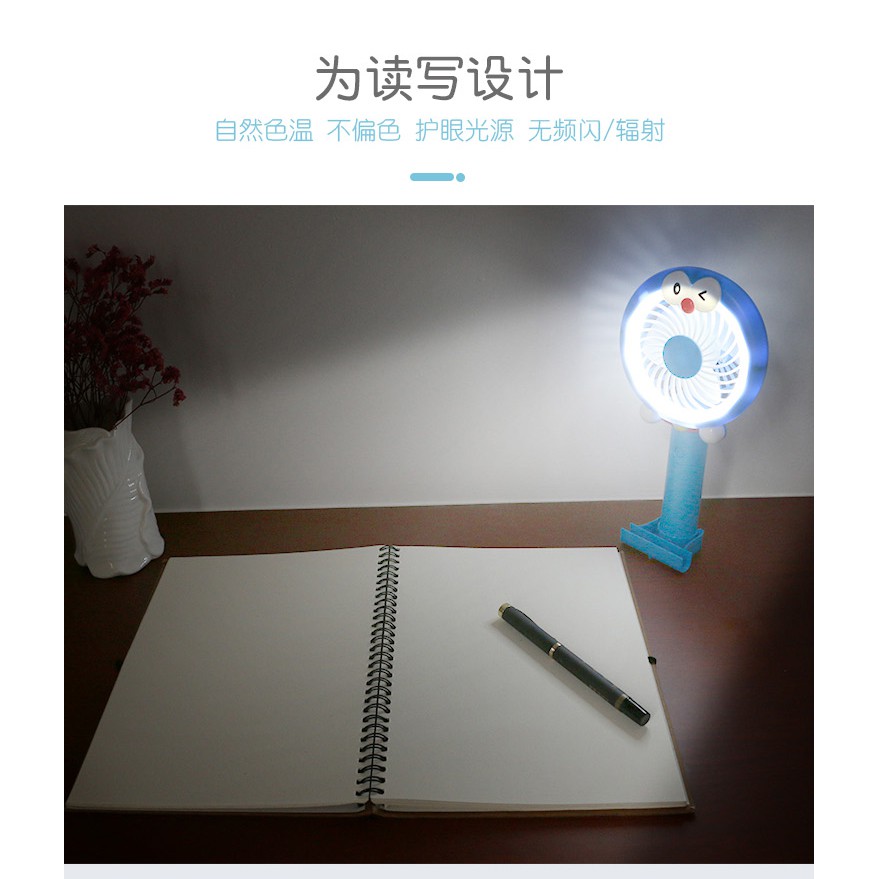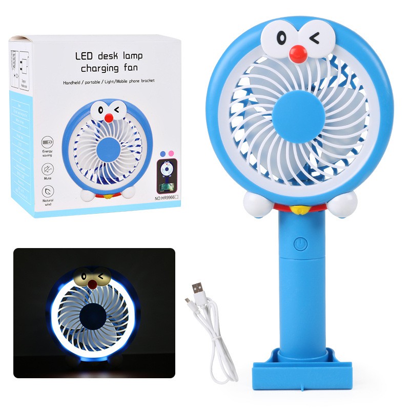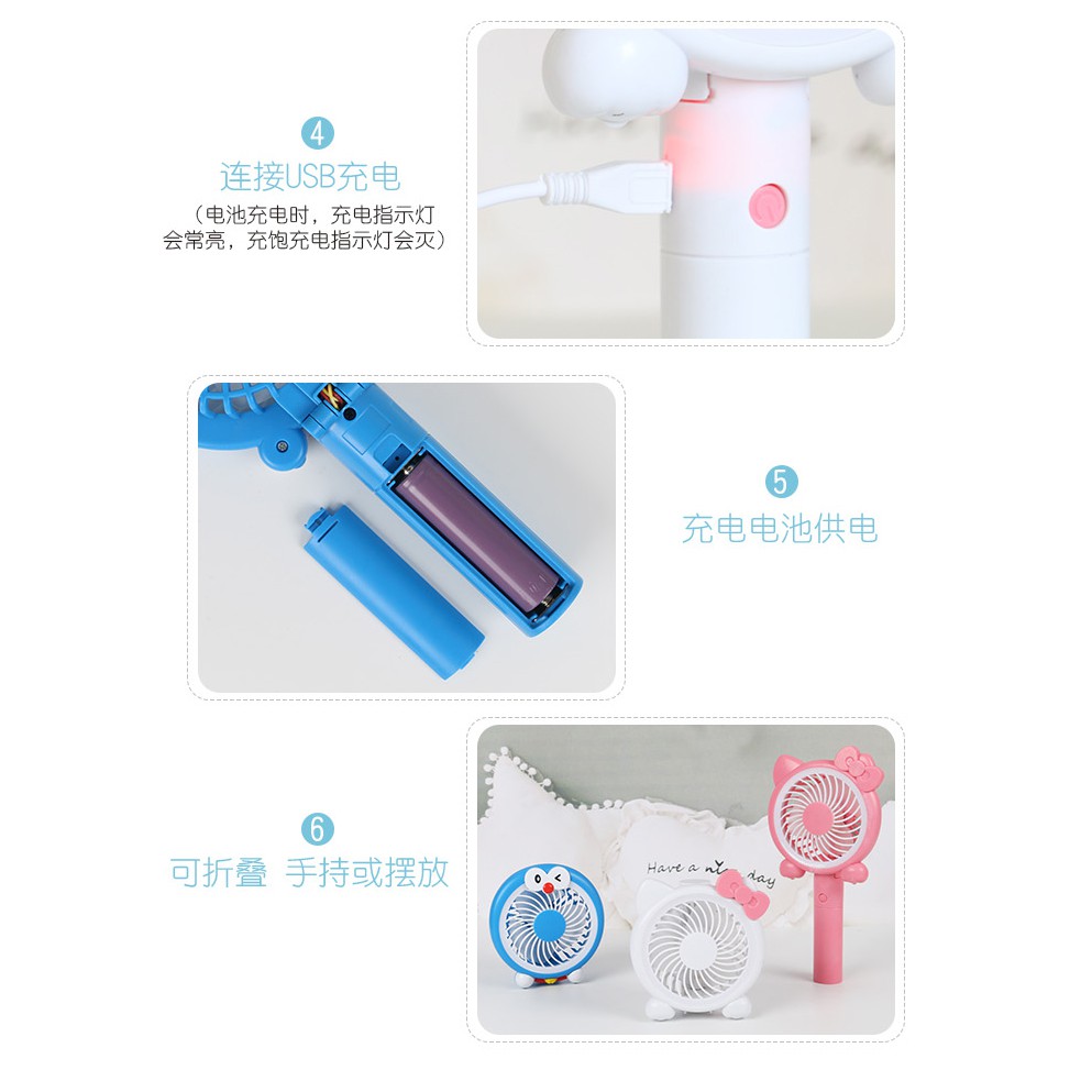 QUẠT TÍCH ĐIỆN CẦM TAY - KITTY VÀ ĐOREMON - CÓ ĐÈN LED ĐỂ BÀNSản phẩm có thể để bàn, gấp gọn và có chân đế để điên thoại