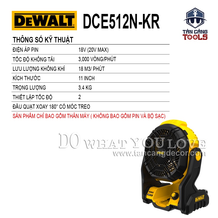 Quạt Dùng Pin 18V DeWalt DCE512N-KR ( Thân Máy )* Thông Tin Sản Phẩm :