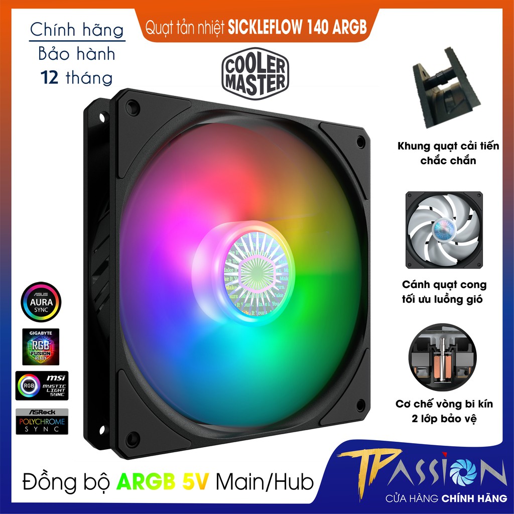 Máy tính & Laptop > Linh Kiện Máy Tính > Quạt và Tản Nhiệt || Quạt Fan Case 14cm Cooler Master SickleFlow 140 ARGB - Chính hãng, tản nhiệt tốt, đồng bộ LED RainbowCòn hàng