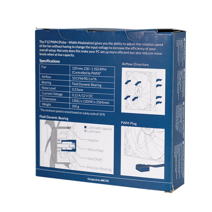Arctic F12 PWM là quạt 12cm phù hợp với việc thổi / hút nhiệt thùng máy tính ở tất cả các kích cỡ thùng máy nhỏ, vừa, lớn ( Full Tower ) nhờ sức gió tốt.