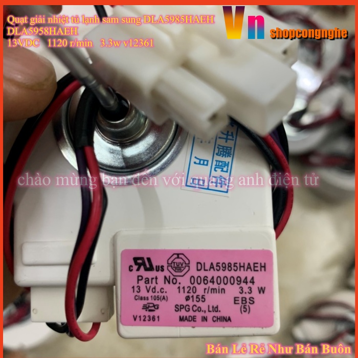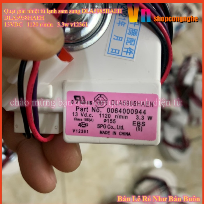 Quạt giải nhiệt tủ lạnh sam sung DLA5958HAEH 13VDC Tốc độ: 1120 r/min Công xuất: 3.3w v12361bên e chuyên linh kiện và đặt hàng từ T Q về V N ac có nhu cầu thì liên hệ qua bên em ạ trân trong