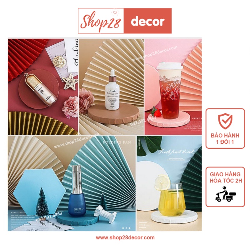 Quạt giấy trang trí phù hợp để chụp các sản phẩm vừa và nhỏ như mỹ phẩm, đồ ăn nước uống phong cách màu sắc, tươi sáng, đơn giản và hiện đại.