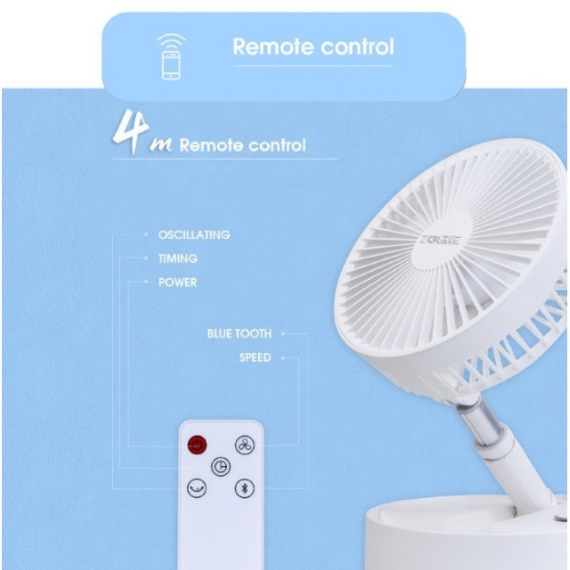 Ngoài ra, quạt sạc tích điện ZOLELE còn được trang bị remote không dây, cho phép người dùng điều khiển thiết bị từ xa vô cùng dễ dàng với khoảng cách tối đa lên đến 4m.