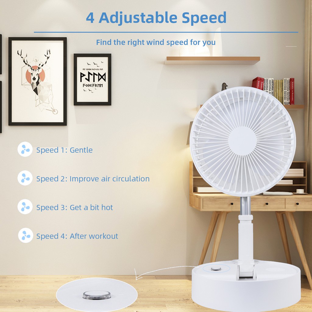 Quạt sạc tích điện ZOLELE sở hữu thiết kế trang nhã với tone trắng thanh lịch, phù hợp bố trí ở nhiều không gian khác nhau. Bên cạnh đó, toàn bộ phần quạt có thể được gấp gọn với kích thước nhỏ hơn rất nhiều chỉ với một vài thao tác đơn giản. Khi gấp lại, chiếc quạt này có thể nằm gọn ở dưới giường hoặc dưới ghế sofa mà không chiếm nhiều không gian trong ngôi nhà.