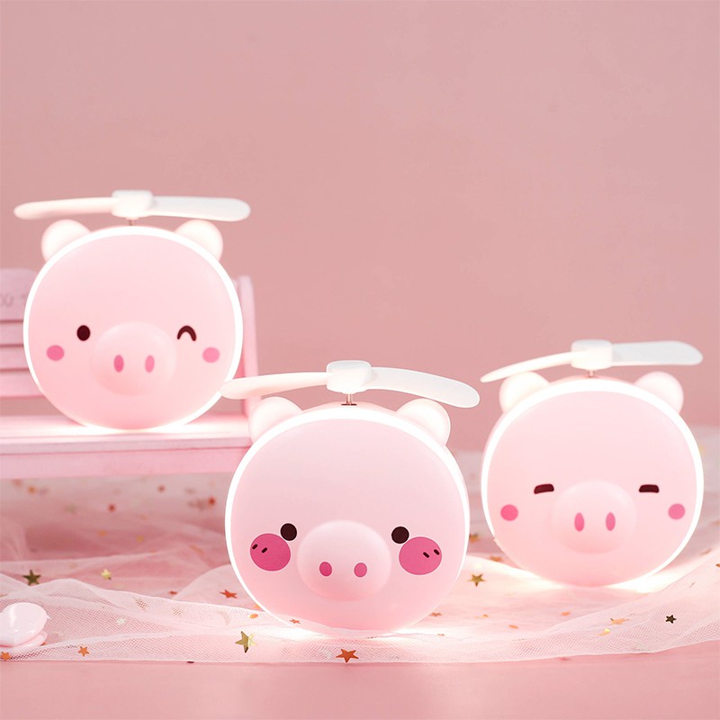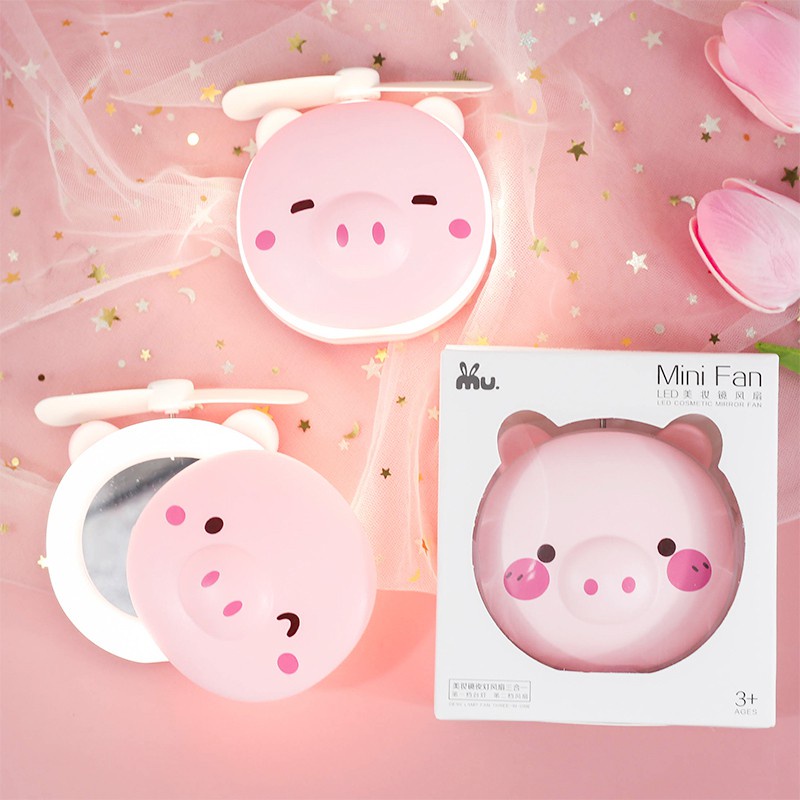 Quạt Heo Có Đèn Kèm Gương Soi Siêu Cute Tiện Dụng ( Có Sạc Đi Kèm )t heo sạc điện mini có đèn và gương soi 3 trong 1 - quạt cầm tay bỏ túi tiện dụng