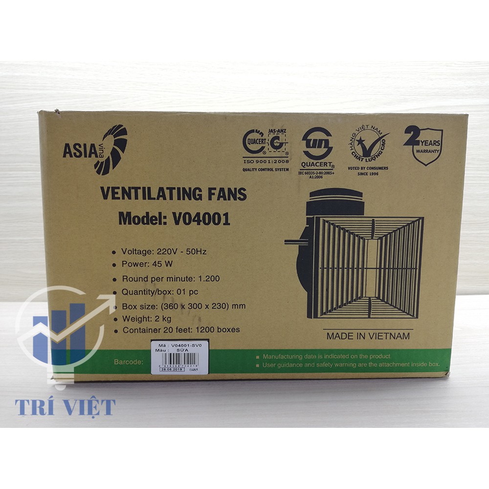Quạt Hút Thông Gió Âm Trần ASIA V04001 45W - Quạt hút mùi bếp - Hút mùi nhà về sinh - Chừa lỗ trần: 27x27 cm