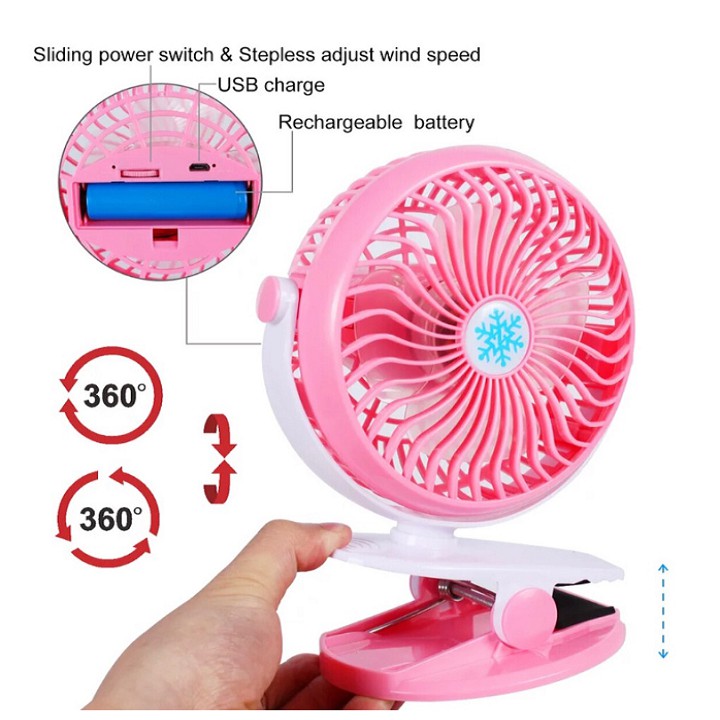 Quạt Kẹp Bàn, Pin Sạc 360 Độ - Quạt Mini Di Động Đa Năng Dùng Trên Ô tô Văn Phòng Kẹp Xe Đẩy