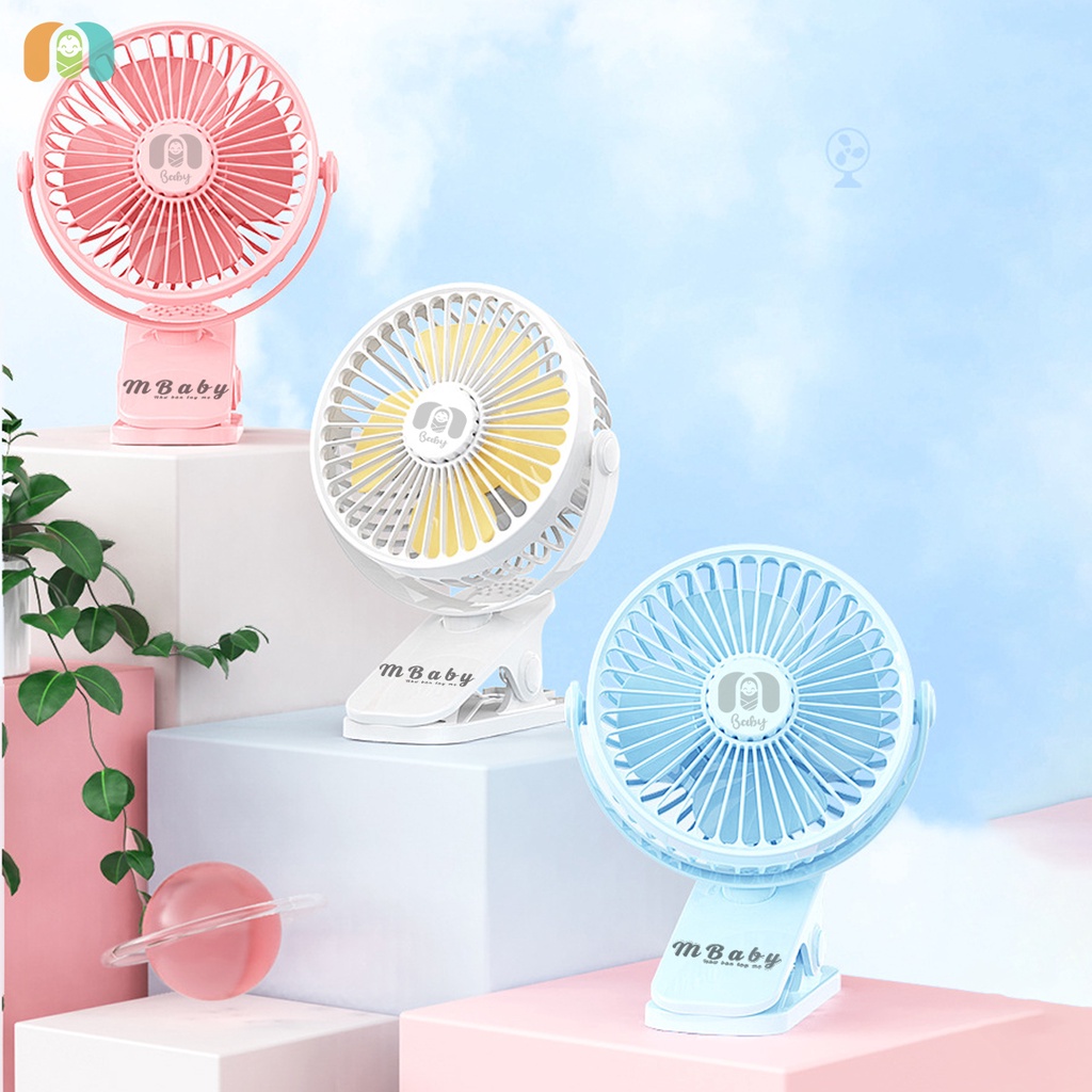 Quạt Mini Cầm Tay Sạc Tích Điện MBABY Kẹp Xe Đẩy Bảo Hành Chính Hãng Khuếch Tán Hương Thơm MBABY M0005 2500mAh (dùng tối đa 12H, xoay 720 độ, bảo hành 12 tháng)