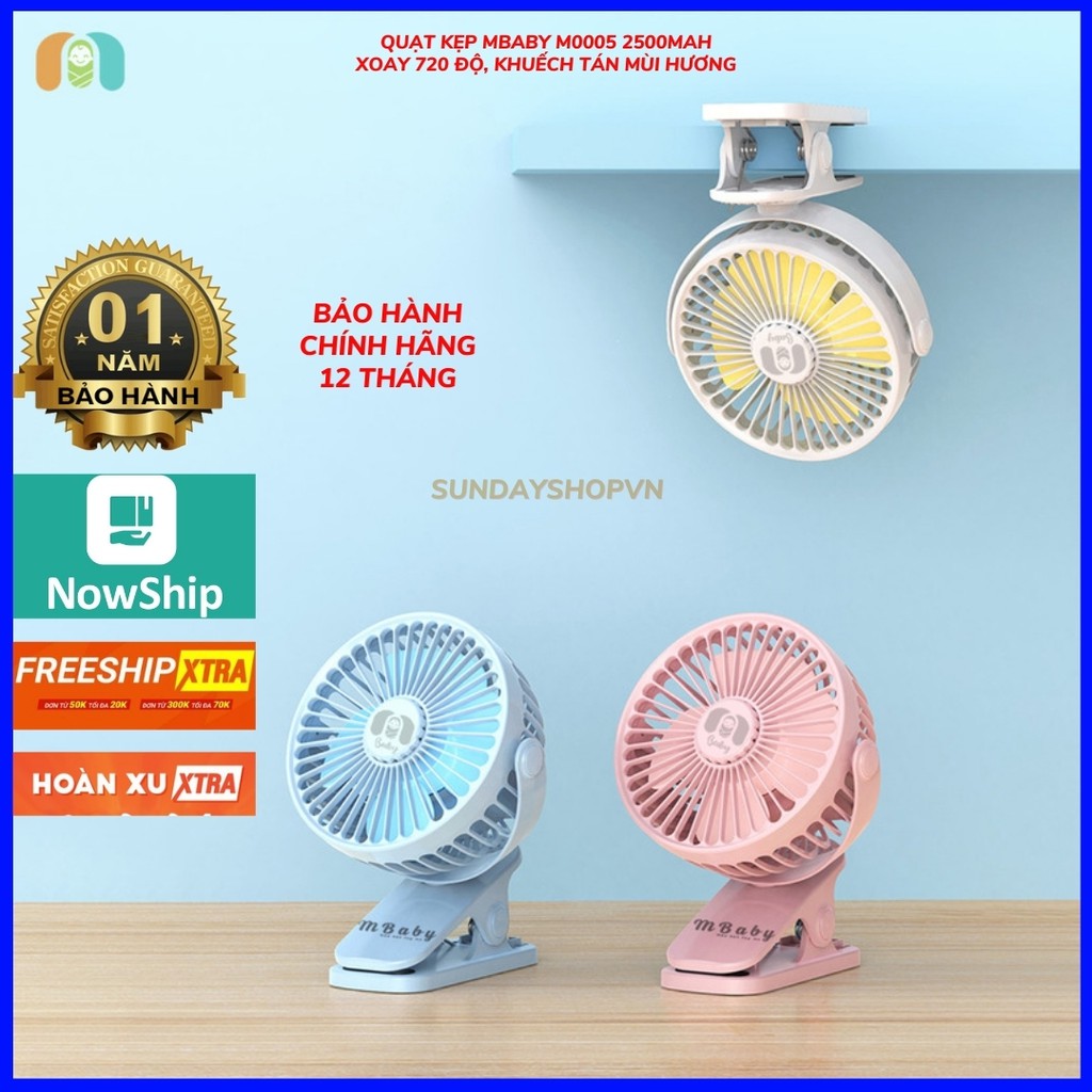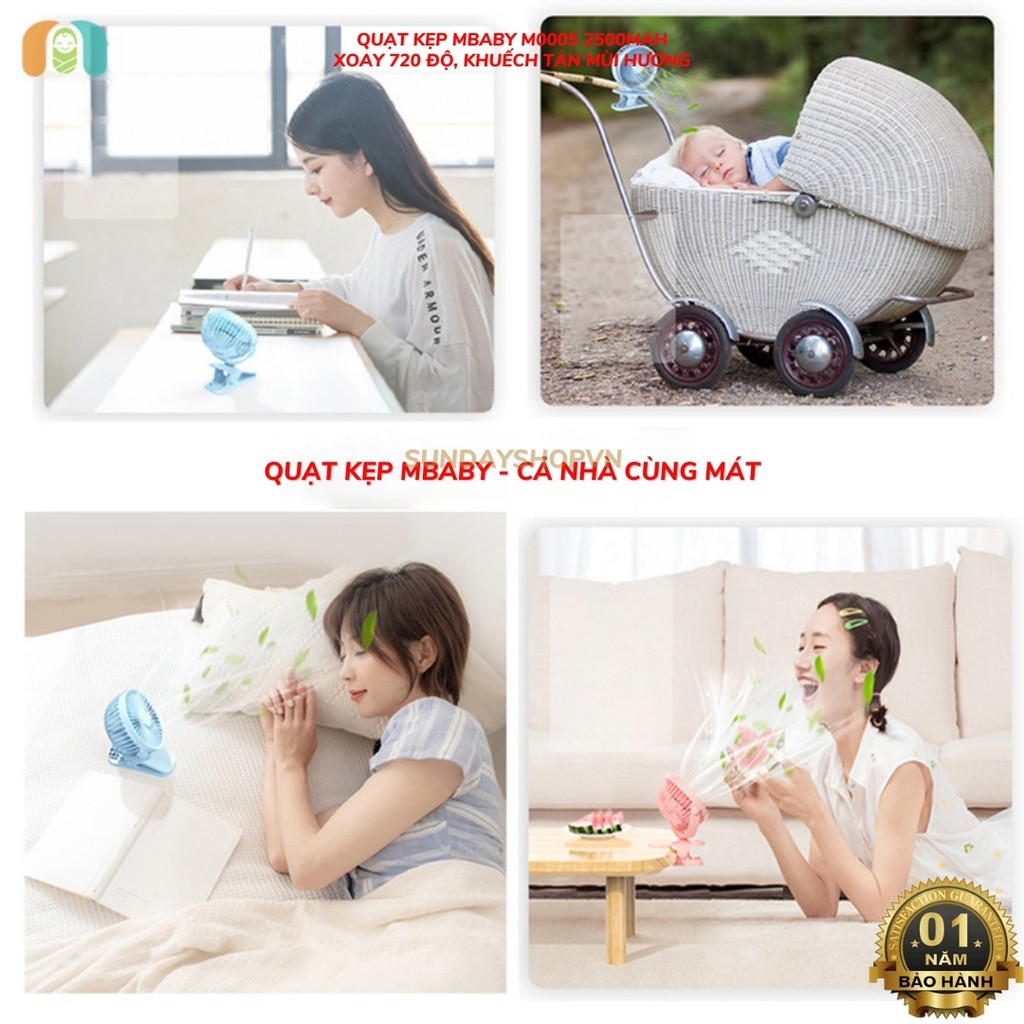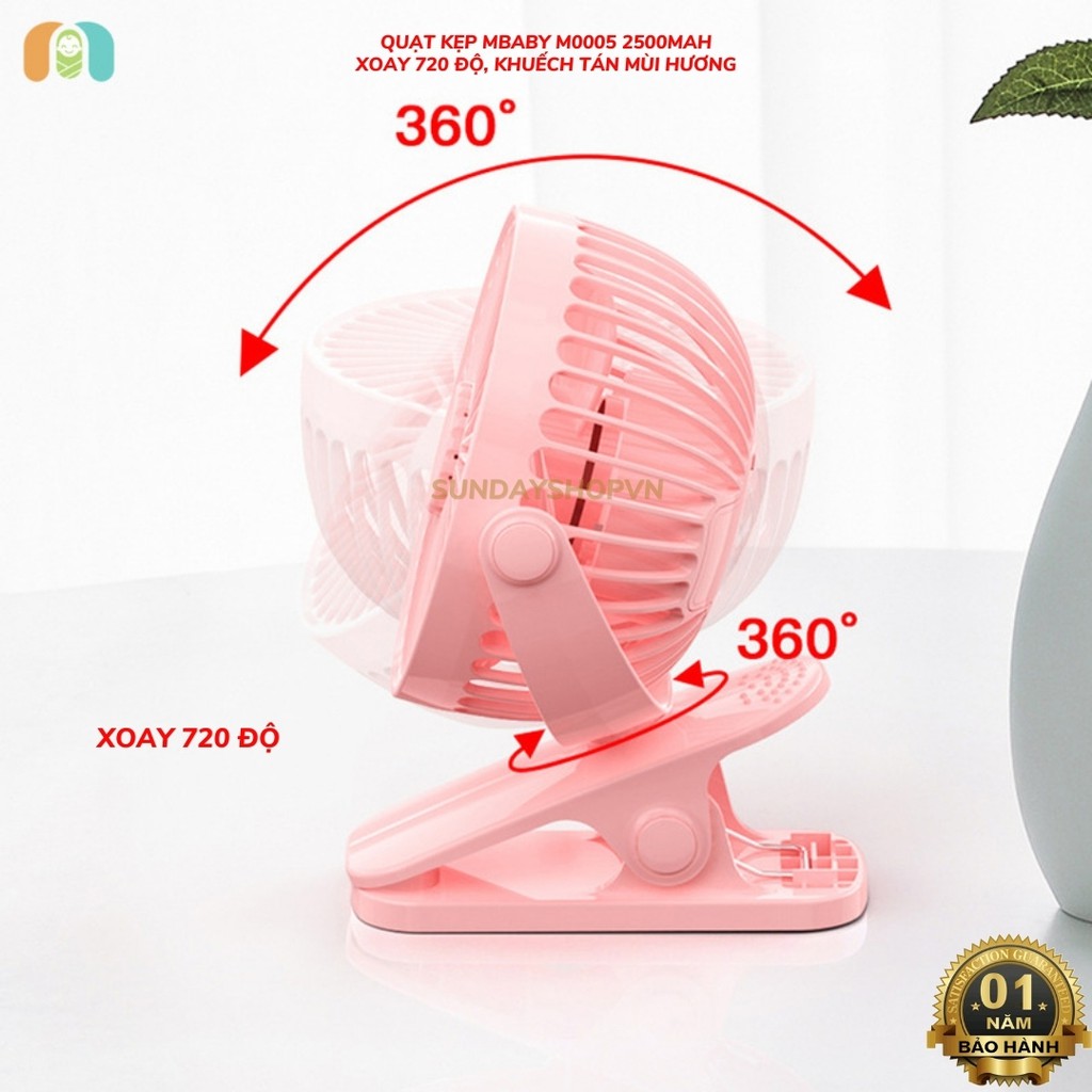 * Quạt kẹp MBABY M0005 2500mAh (khuếch tán hương thơm, dùng tối đa 12H xoay 720 độ, bảo hành 12 tháng)
