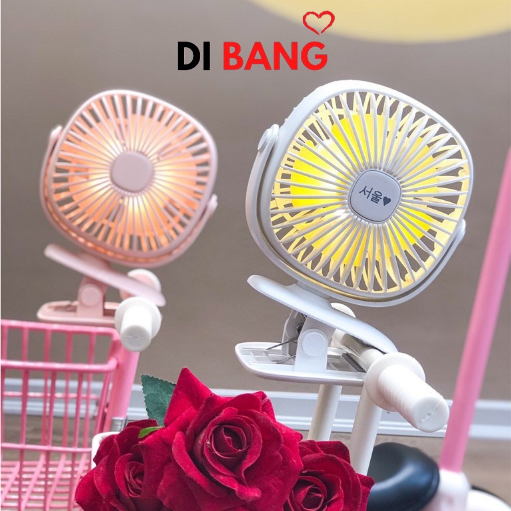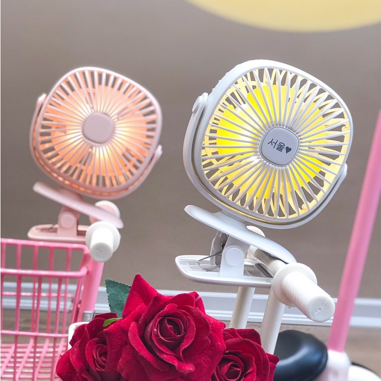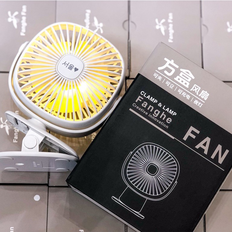 Quạt kẹp xe đẩy, nôi Fanghe Hàn có đèn Led, Quạt mini đa năng xoay 360 độ, pin sạc usb, tiện lợi siêu mát êQuạt tích điện mini kẹp đa năng xoay 360 độ có pin sạc tiện lợi, là sản phẩm quạt mini thiết kế siêu đáng yêu, Có đế kẹp chắc chắn tiện lợi để kẹp xe đẩy hay bất kỳ chỗ nào như bàn học, cạnh giường, nôi cũi...
