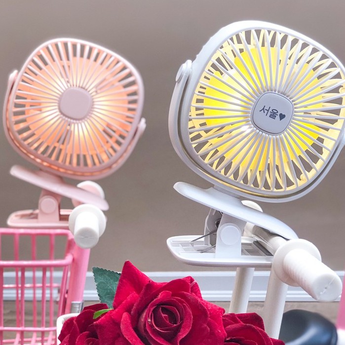 Điện Thoại & Phụ Kiện > Phụ kiện > Quạt USB & Quạt điện thoại || Quạt kẹp xe đẩy, nôi Fanghe Hàn có đèn Led, Quạt mini đa năng xoay 360 độ, pin sạc usb, tiện lợi siêu mát êCòn hàng