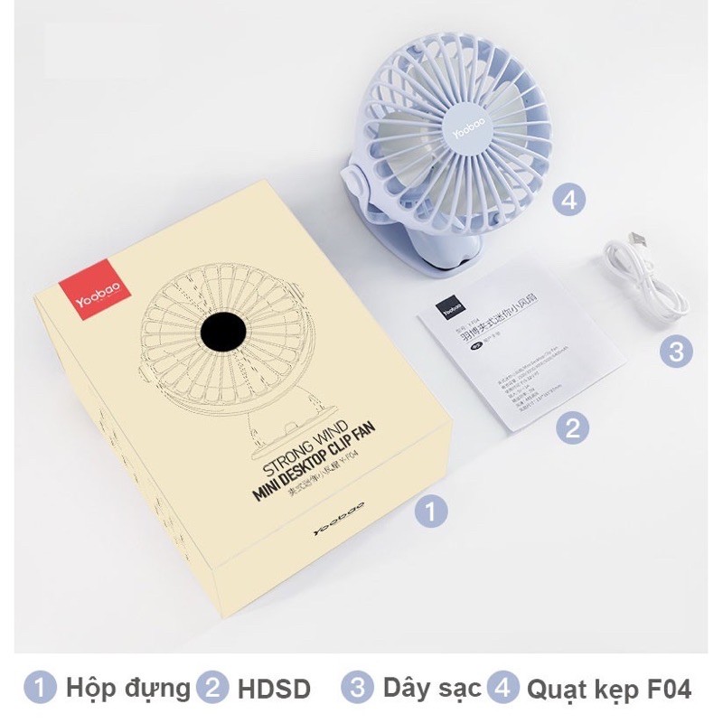 Điện Thoại & Phụ Kiện > Phụ kiện > Quạt USB & Quạt điện thoại || Quạt kẹp YOOBAO F04 xoay góc 360 độ, Quạt kẹp xe đẩy, để bàn pin sạc 6400mAh, chạy liên tục tới 32 tiếngCòn hàng