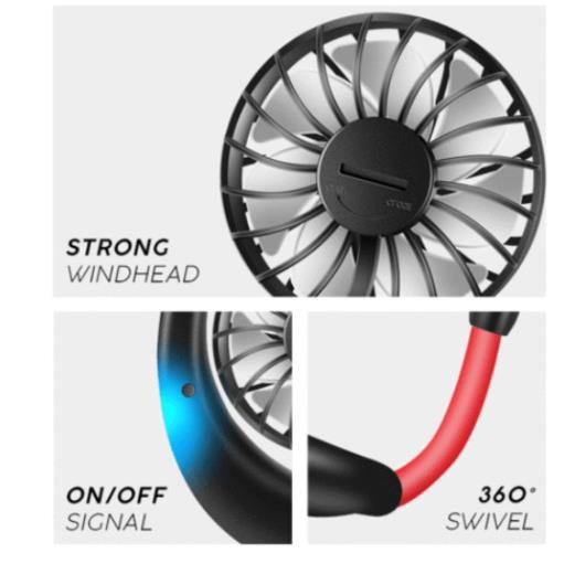 Chỉ cần treo xung quanh đầu bạn như một chiếc tai nghe và đi du lịch bất cứ nơi nào. Quạt không dây di động này Có đầu gió kép được cung cấp bởi pin Li 1800mAh (có thể sạc lại bằng USB) với 3 mức tốc độ có thể điều chỉnh. Nó có thể điều chỉnh 360 độ để phù hợp với góc hoàn hảo.