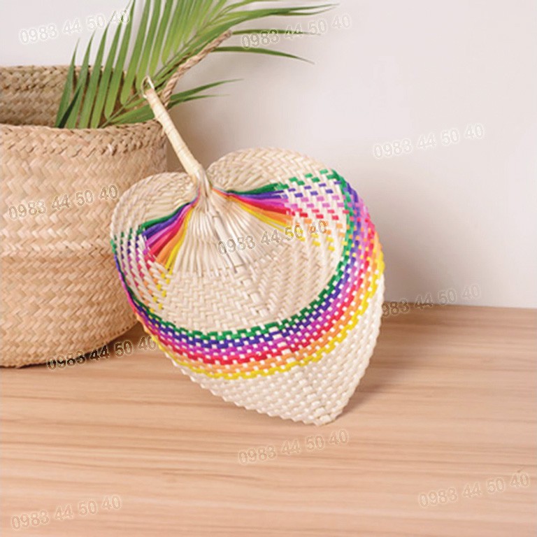Quạt lá gồm nhiều màu sắc đỏ, hồng, xanh, ....