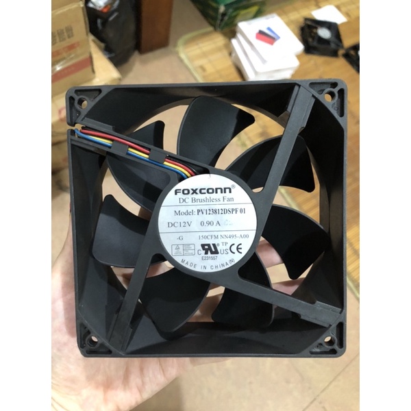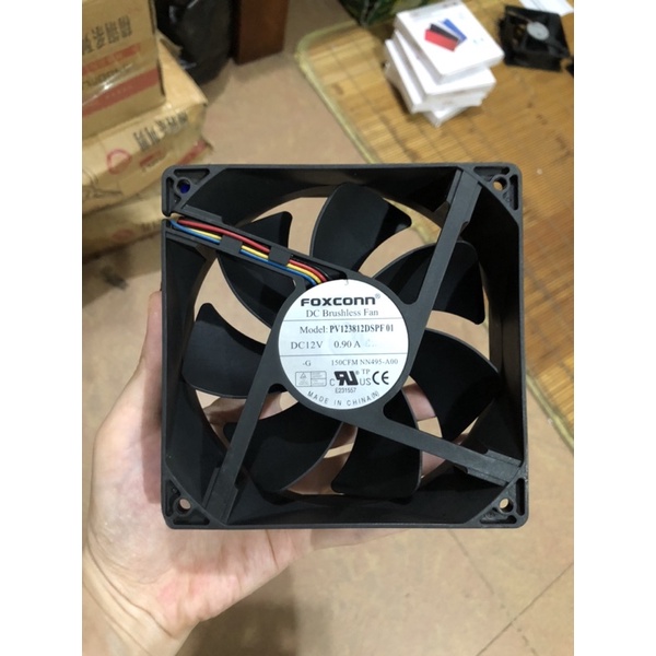 Quạt làm mát foxconn 12v kích thước 12x12x3,8cmChạy điện 12v dòng 0.9A cực mát.