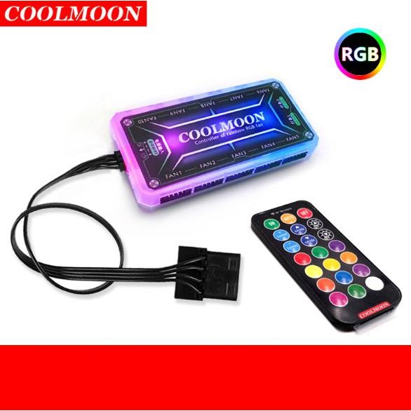 HUB RGB + ĐIỀU KHIỂN COOLMOON : 1 bộ HUB cắm tối đa 10 quạt + 2 dây led