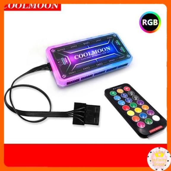 HUB RGB + ĐIỀU KHIỂN COOLMOON : 1 bộ HUB cắm tối đa 10 quạt + 2 dây led