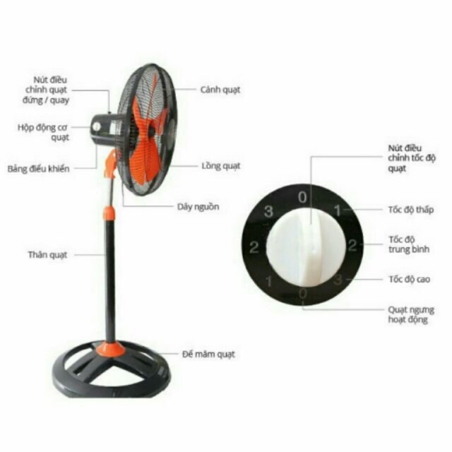 Bầu quạt chạy khỏe, cực êm, có 3 số mạnh nhẹ để lựa chọn tốc độ gió