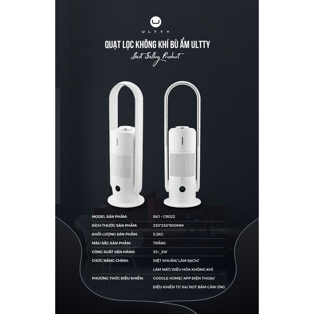Quạt Lọc Không Khí Bù Ẩm ULTTY SKJ-CR022 | Bộ Lọc HEPA H13 - Bù ẩm 3 cấp | Bảo hành chính hãng 24 tháng