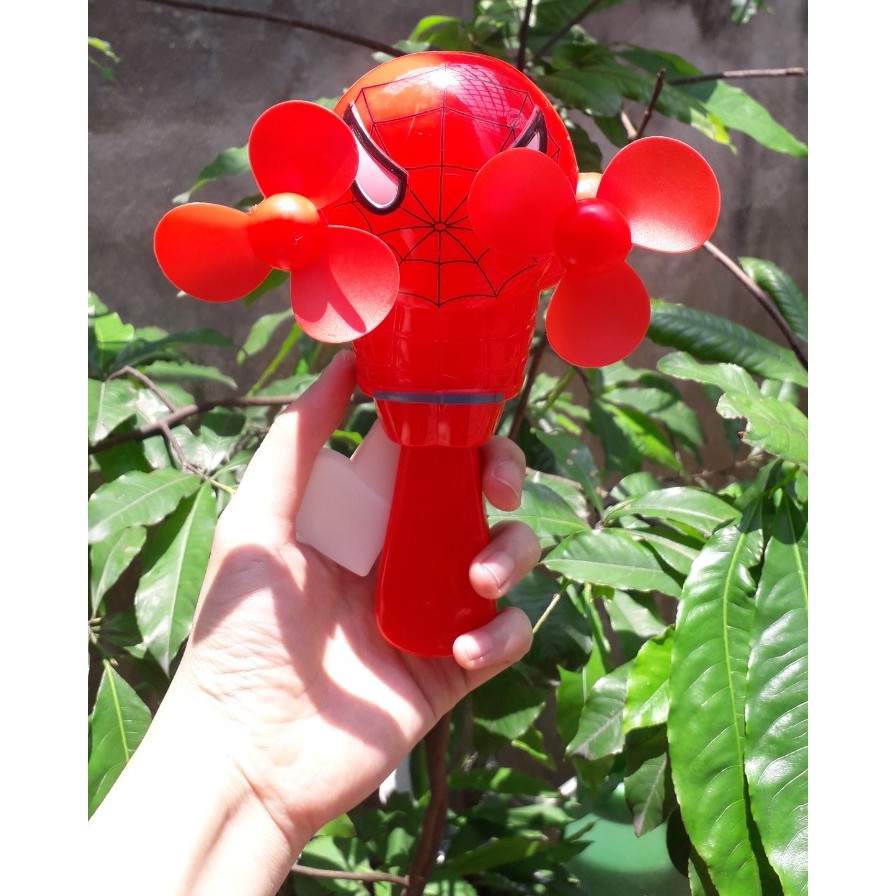 Quạt mini bóp tay 2 cánh làm bằng nhựa hình siêu nhân nhện, quạt mini KHÔNG CẦN PIN mà vẫn chạy ngon