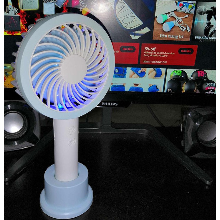 Quạt Mini Cầm Tay 2 Chế Độ 4 Cánh Pin Sạc Có Đế Để Bàn- Quạt Mini Cầm Tay 2 Chế Độ 4 Cánh Pin Sạc Có Đế Để Bàn rất tiện cho chúng tay khi đi du lịch bởi vì chúng tay có thể bật quạt lên và sở hữu cho mình một làn gió mát và trong lành. Với bộ pin tích hợp cổng sạc USB giúp bạn có thể xạc pin được dễ dàng hơn.