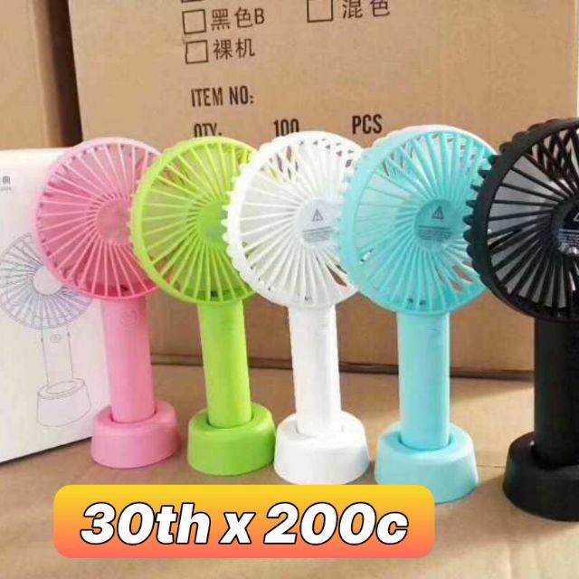 Xả kho quạt mini cầm tay gồm 1 đế,1 dây sạc,1 dây đeo.Quạt có 3 chế độ, sử dụng được 2-3 tiếngCó 2 màu đen và xanh nhạt