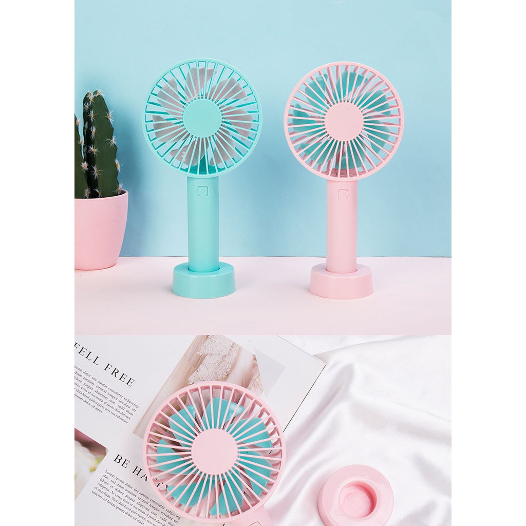 Quạt mini cầm tay 3 tốc độ có chân đế đứng, sạc USB